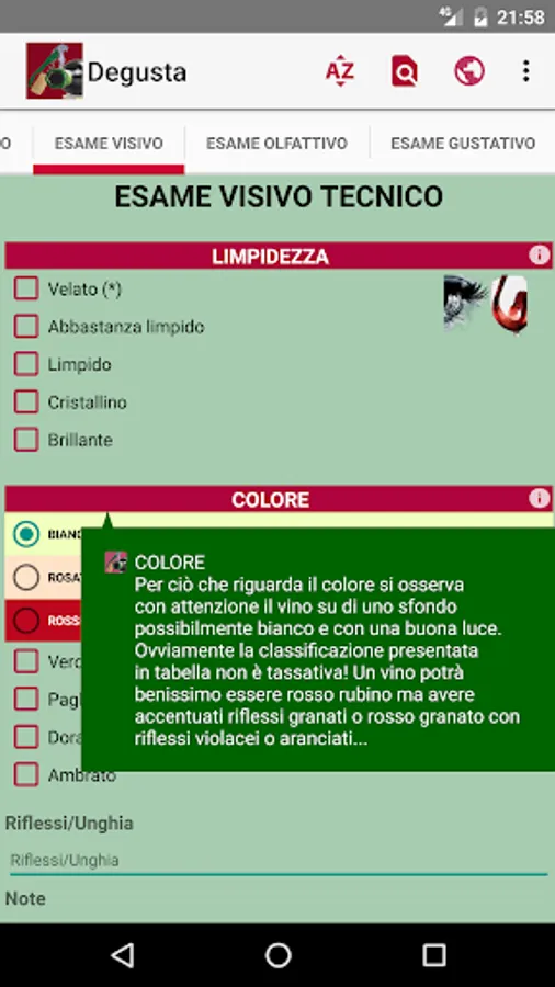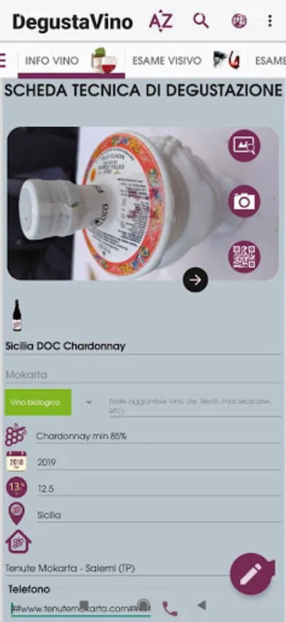 - it is possible to associate the image of the label of the wine tasted (either by taking the photo or by using an image already present in the gallery).