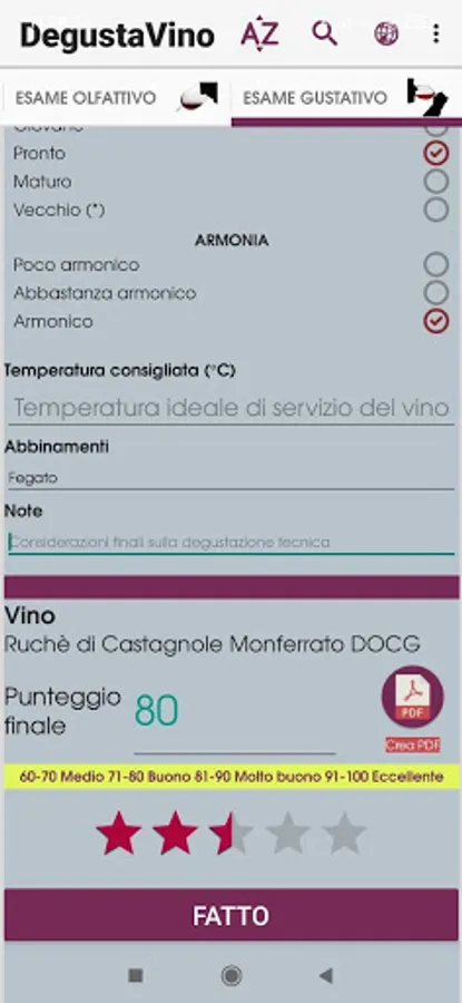 - the memorization of the wines tasted and the compilation of the relative tasting sheet.
