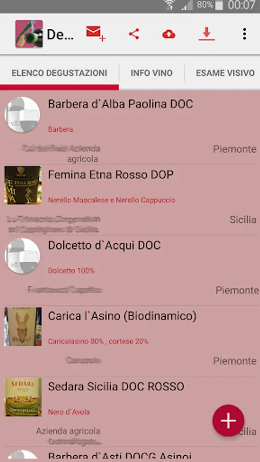 - Keeps a list of tasting (briefly touch the wine: more information, touch and hold: the actions available through menus' contextual)