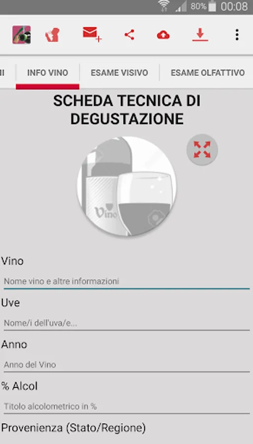 - Can be associated with the image of the label of the wine tasted (both taking the picture, using an image that already present in the gallery)