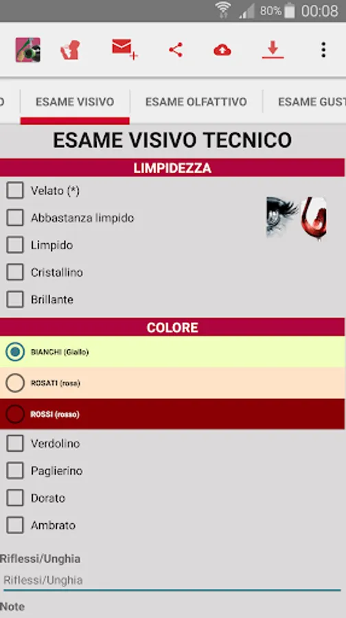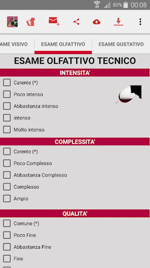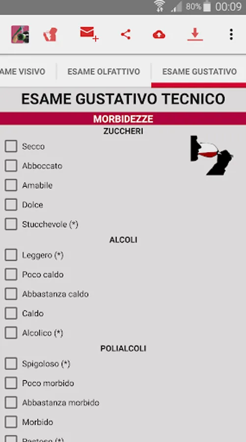 App support to wine tasting (version LIGHT) with use of terminology AIS
