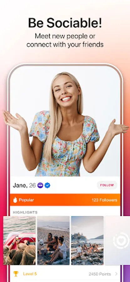 Find new people near you or from all around the world, break the ice with games, chat, send videos & photos, share interests and socialize while having fun.