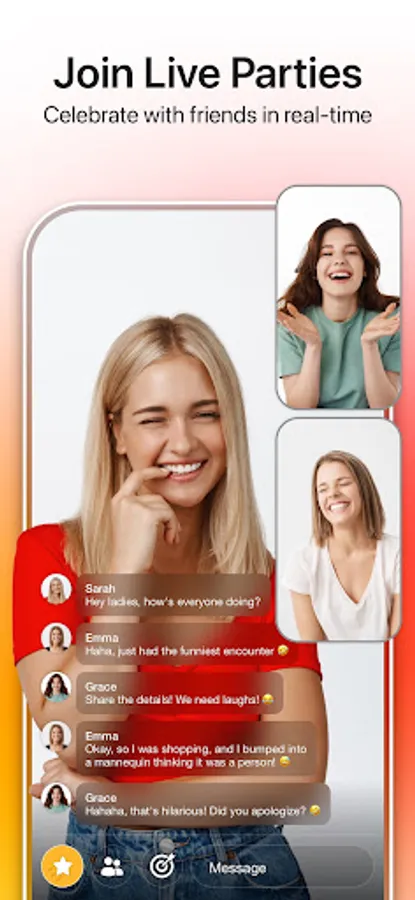 ๐คณ Live Video Chat: You can invite a friend to start a 1:1 live video chat or create a live chat room with up to 8 people. Chat-rooms are completely free.
