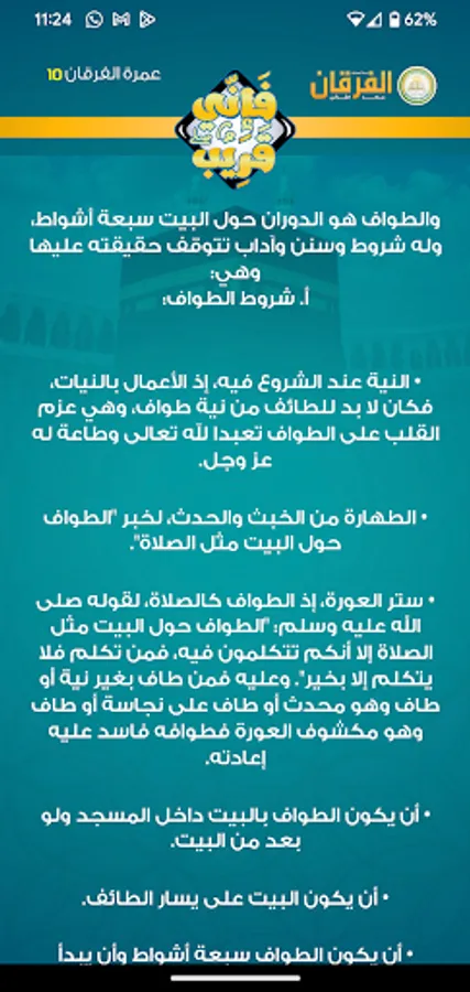 An application for the participants in Umrah Al-Furqan, and it is also useful for everyone who wants to perform Umrah. It contains many information and basics necessary for every pilgrim.
