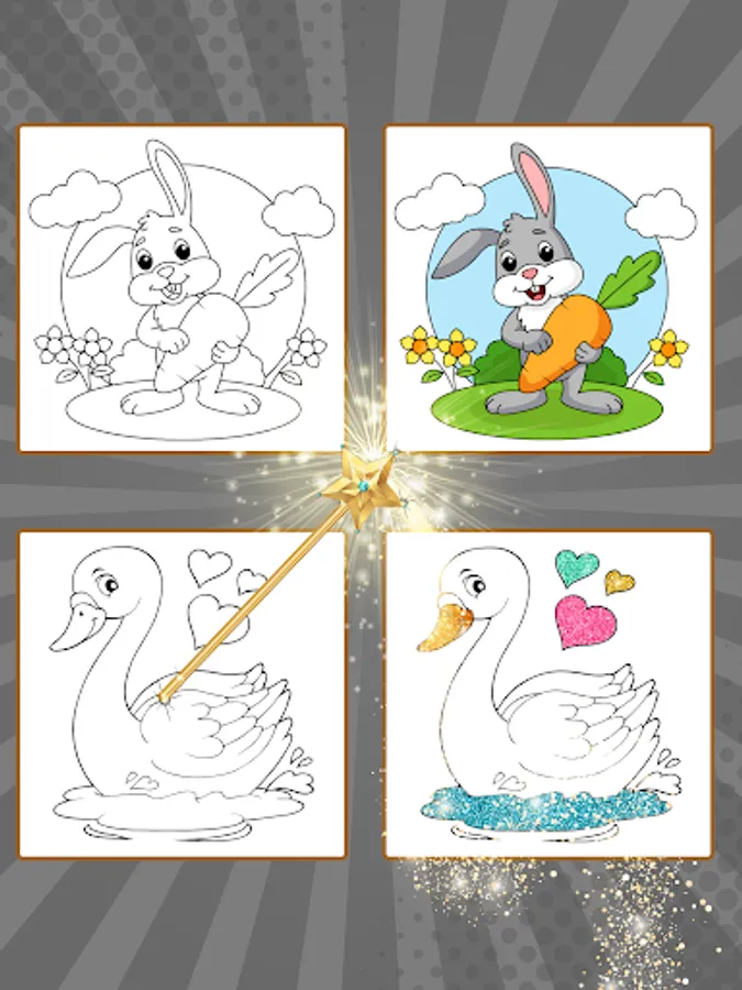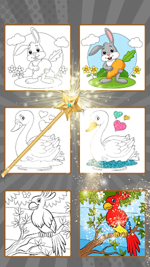 This virtual coloring game, full of animals coloring sheets, is designed for girls and boys alike. It is suitable for both phones and tablets.