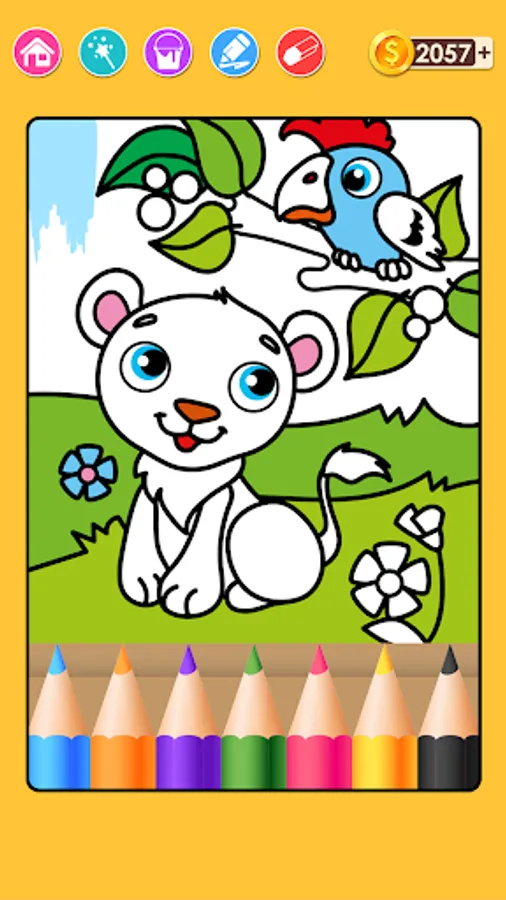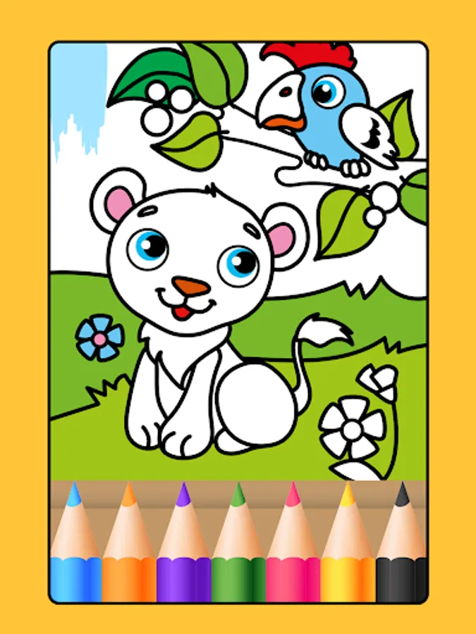This is a children coloring app full of animals such as lion, tiger, elephant, parrot, horse, dog.