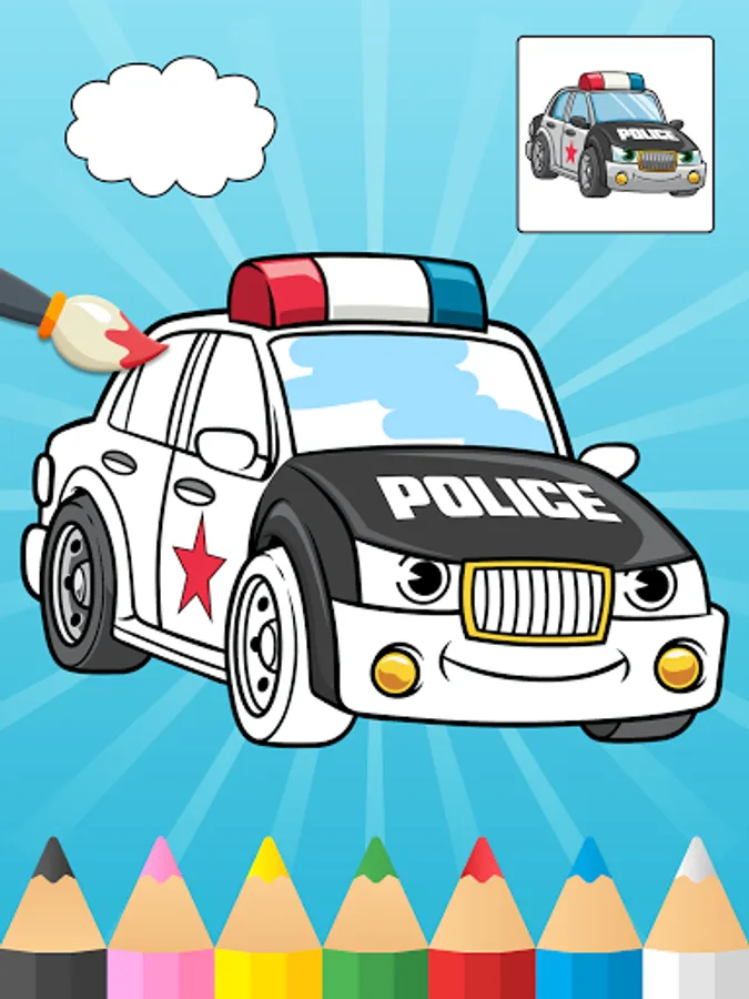 A wonderful and free application for cars coloring.