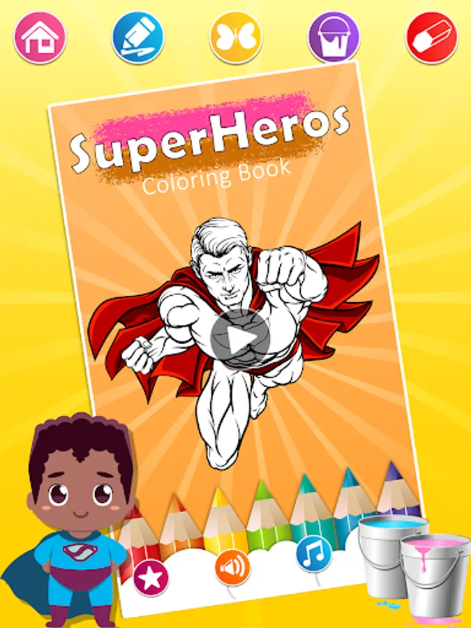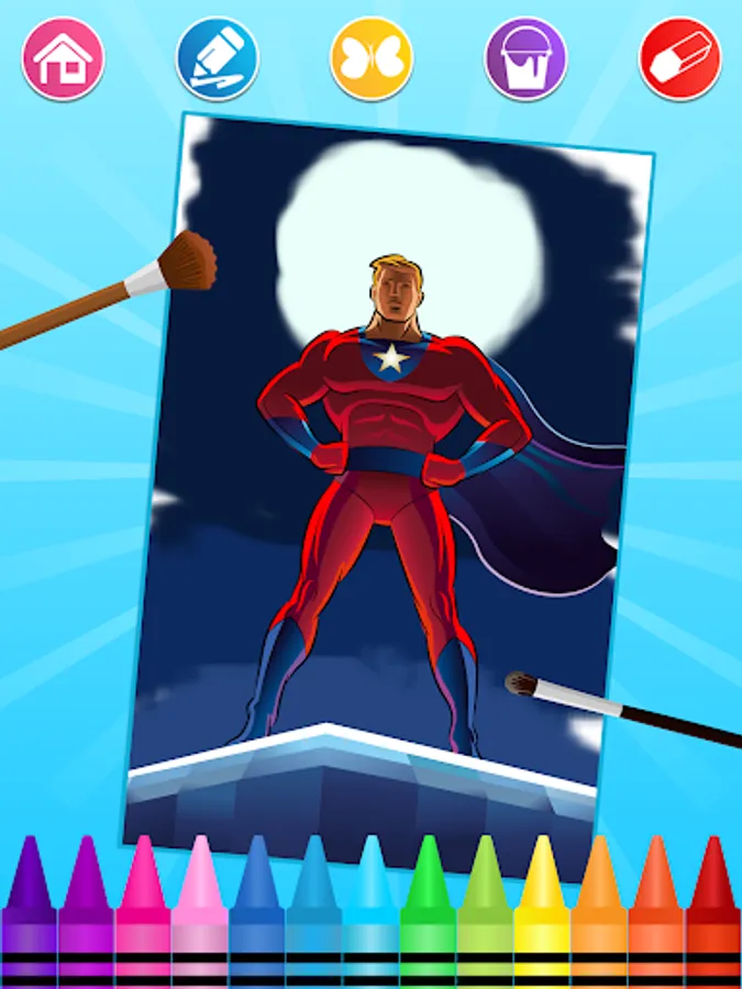 This virtual coloring and drawing book, full of superhero pictures, is designed for all family ages, girls and boys alike (although, boys especially like it). It is suitable for both phones and tablets.