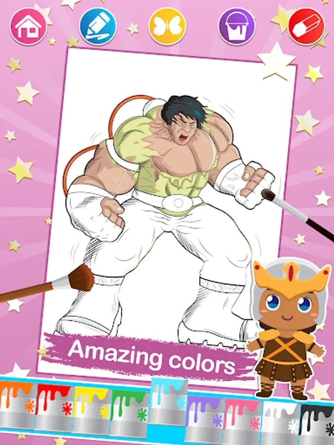You can fill the colors in prepared image outlines and can also create your own original drawings. It is so simple and easy even the youngest kids can play it. This coloring book includes a lot of beautiful images of famous and beloved superhero characters.