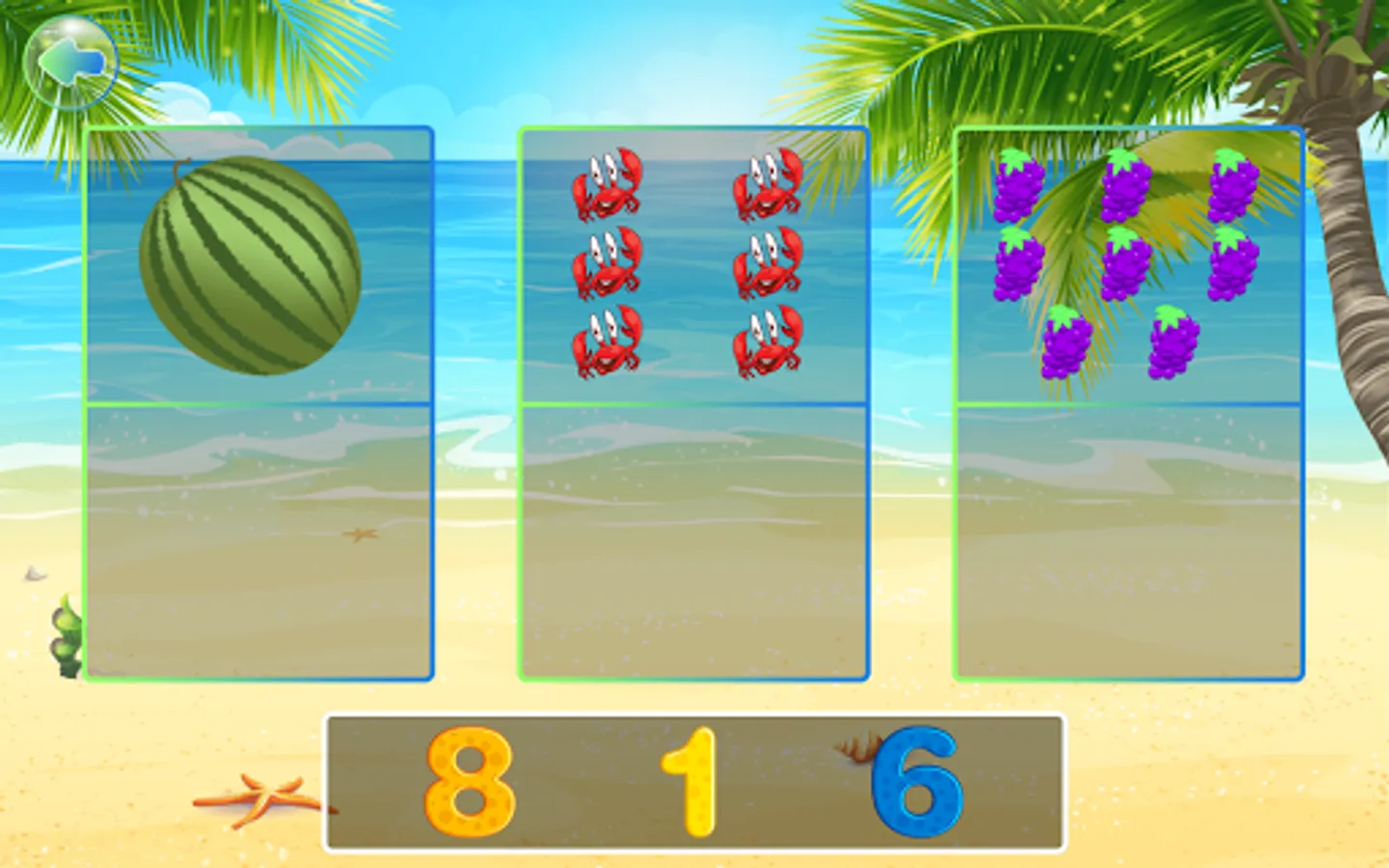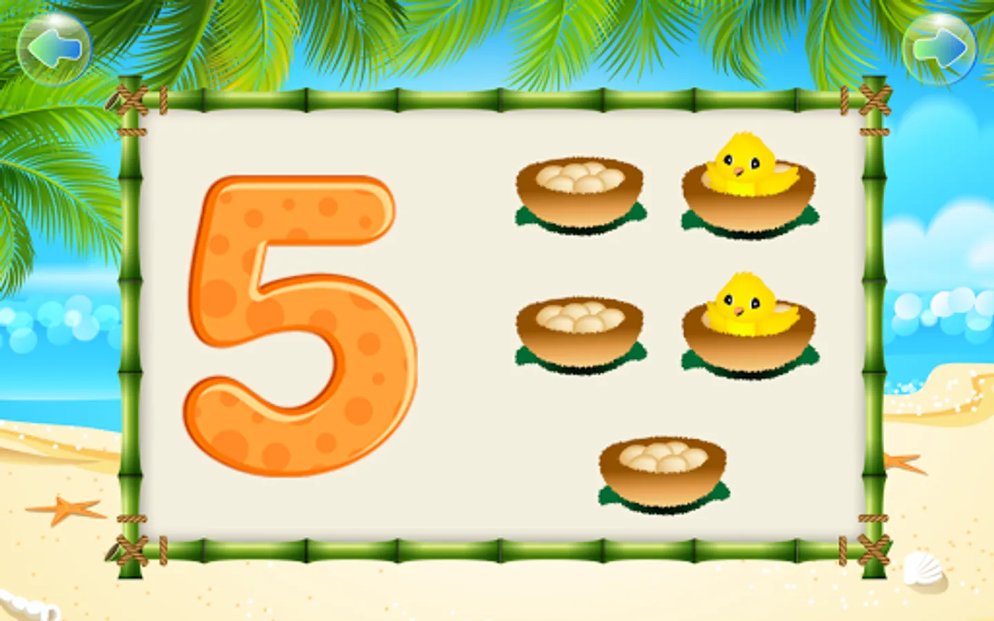 This application contains 6 rich sections. The sections are designed for little kids to know the numbers and learn how to count. These sections are designed in a very colorful and interesting