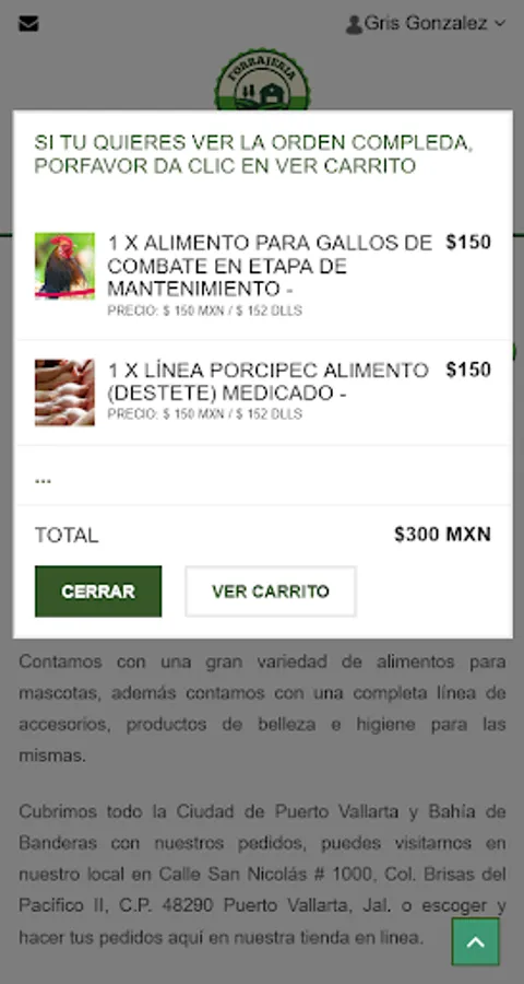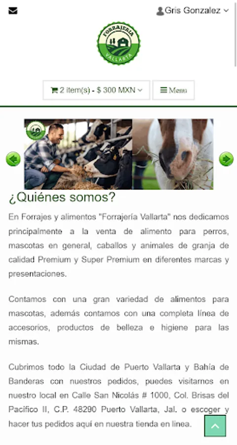 At "Forrajería Vallarta" we are mainly dedicated to the sale of Premium and Super Premium quality food for dogs, pets in general, horses and farm animals in different brands and presentations. Find us at our location in Calle San Nicolás #1000, Colonia Brisas del Pacifico, Puerto Vallarta, Jalisco.