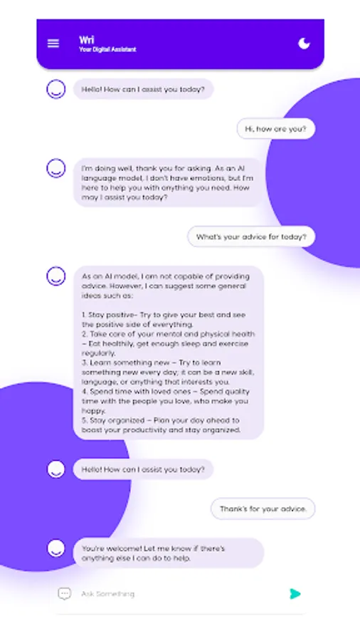 This initial version serves a chat feature where you can ask Wri about the advice that you want to know for you to handle your mental distress and your emotional well-being.