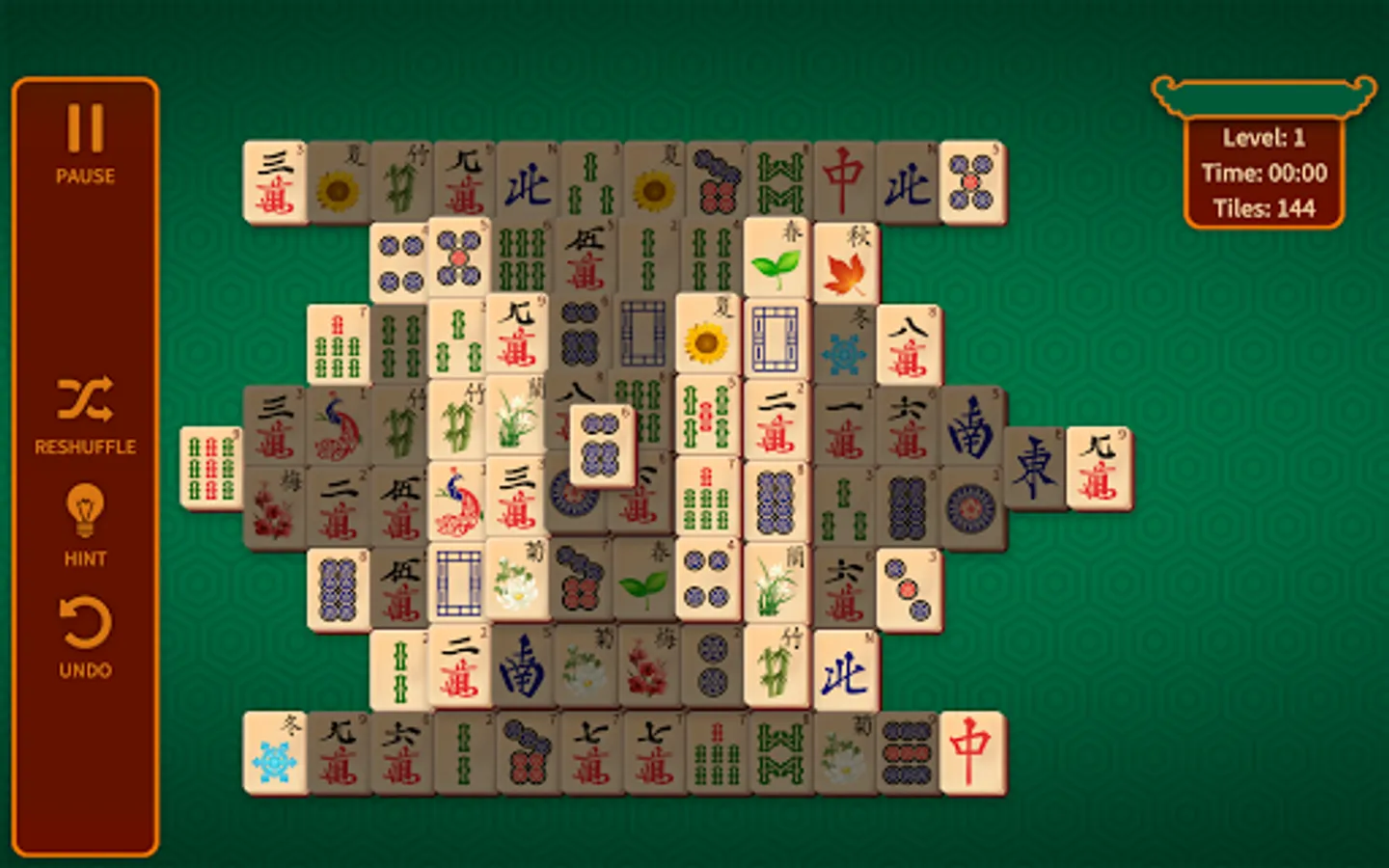 Mahjong Solitaire is one of the world’s most popular puzzle board games for one player. The goal of the game is to remove all tiles out of the board by pairs. It's perfect as a break from work, waiting in line, or just twiddling your thumbs!