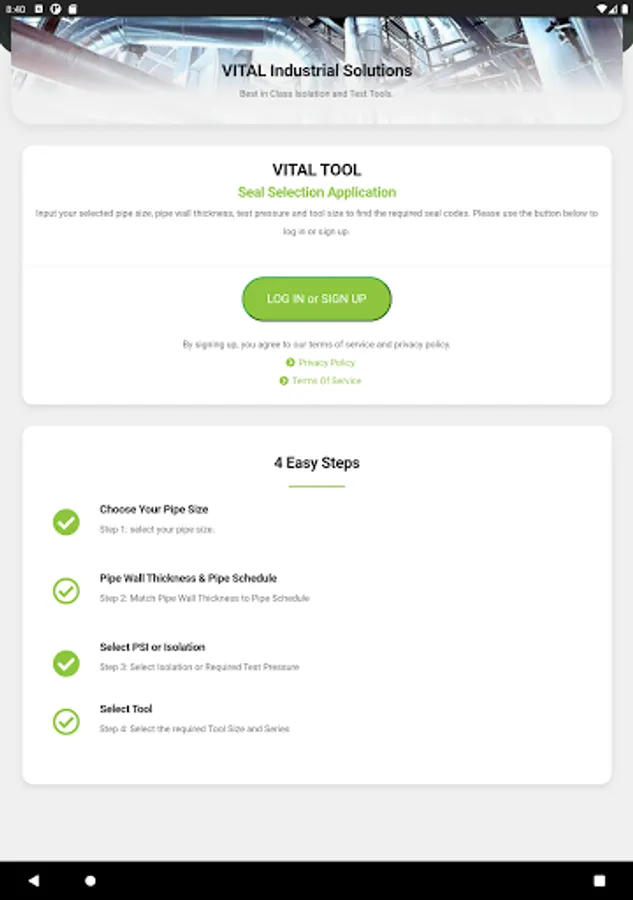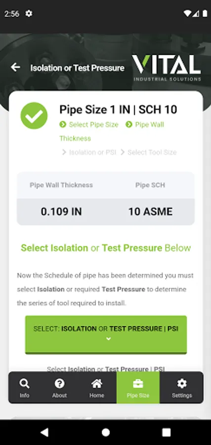 This app contains the pressure tables and tools sizes required to achieve a successful pressure test.