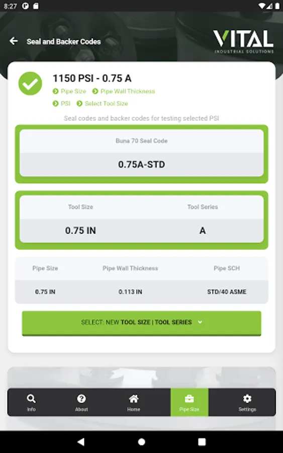 Use our tool to find the required seals to complete your Hydrodynamic Isolation, Hydrostatic Isolation or Hydrostatic Weld Test.
