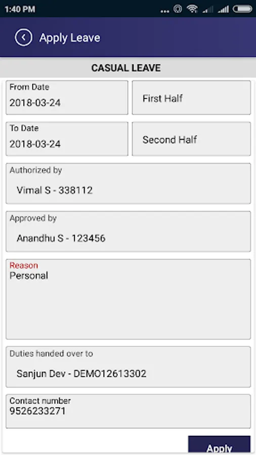 * leave requests/authorize and approval.