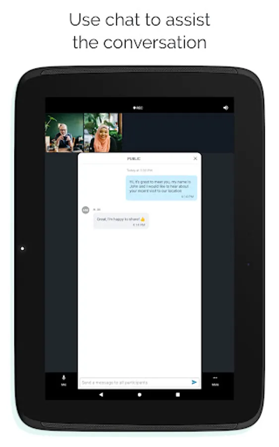 Participants are able to easily join in face-to-face conversations with researchers, while protecting privacy and encouraging interaction. Screen sharing facilitates engagement and allows for reviewing of apps, websites and documents easily and securely.