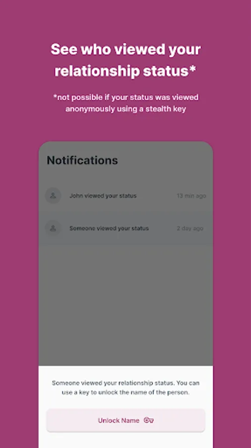 - See their status anonymously. You can unlock their status using "stealth" keys, a premium version of our in-app currency. This ensures that the other person can never see your name.