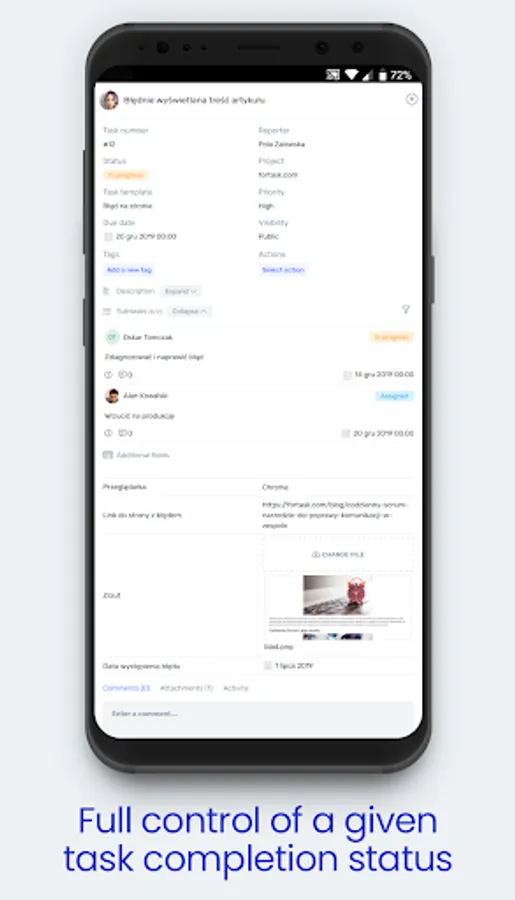 We know from experience that application performance is an important aspect affecting the quality of work. Searching for the information you need with the help of advanced filters will simplify things. Apart from the tasks in the application, you can also define the company structure. Moreover, it is also worth taking advantage of planning work in the form of sprints, design graphs/tables to discuss various topics, or a comfortable chat. You get a preview of the content, attachments, and comments changes without having to refresh the page.
