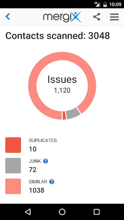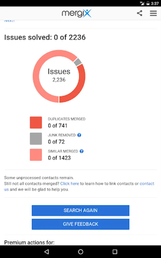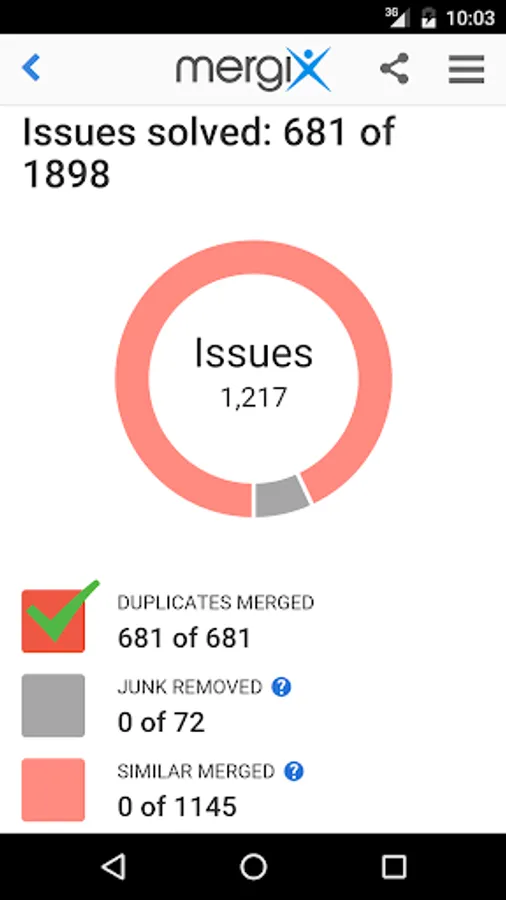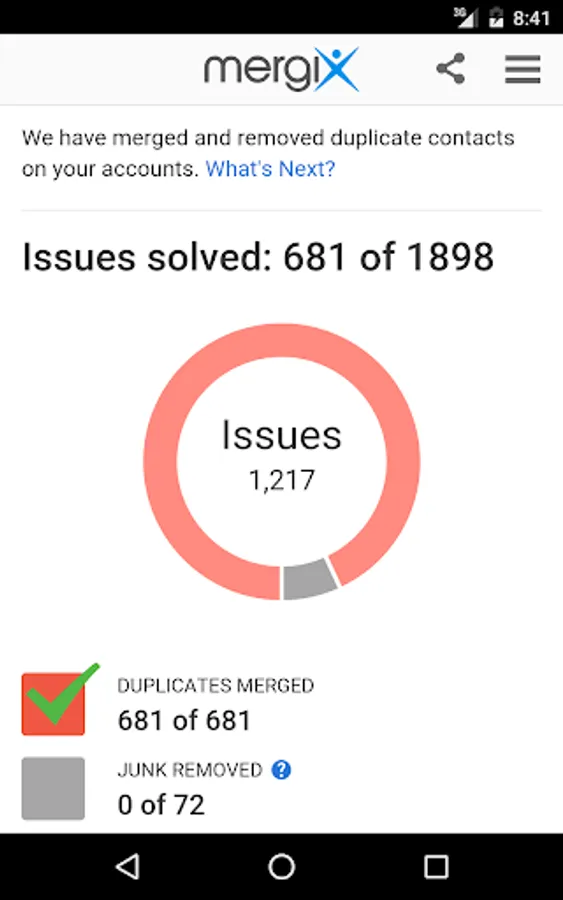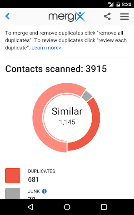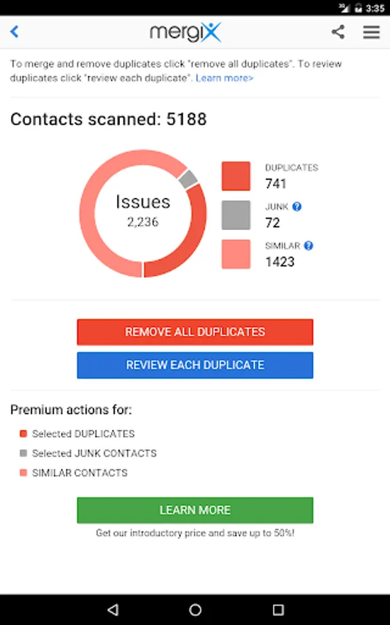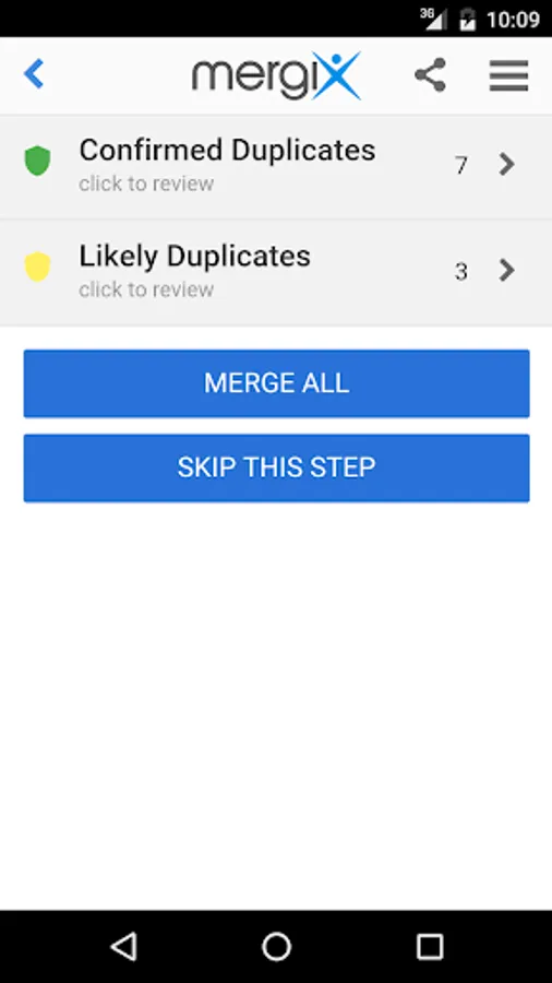 * Review detected duplicate contacts and merge them all in one click;