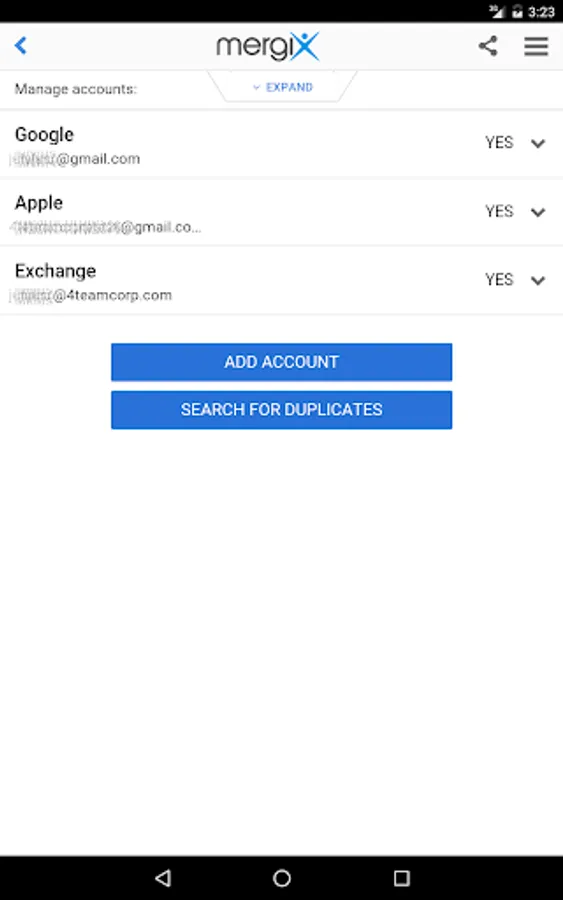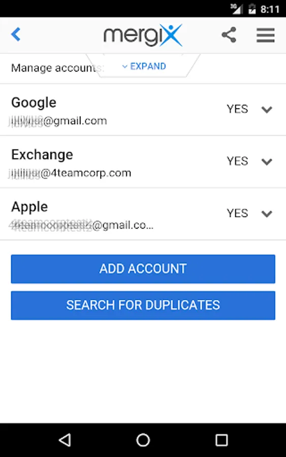 * Scan your device(s)/email account(s) and find duplicate contacts automatically.