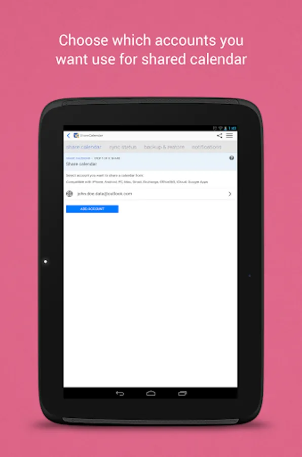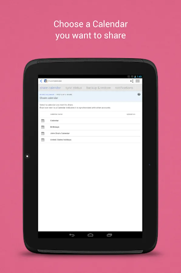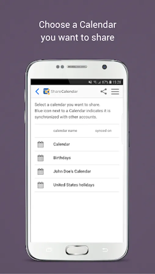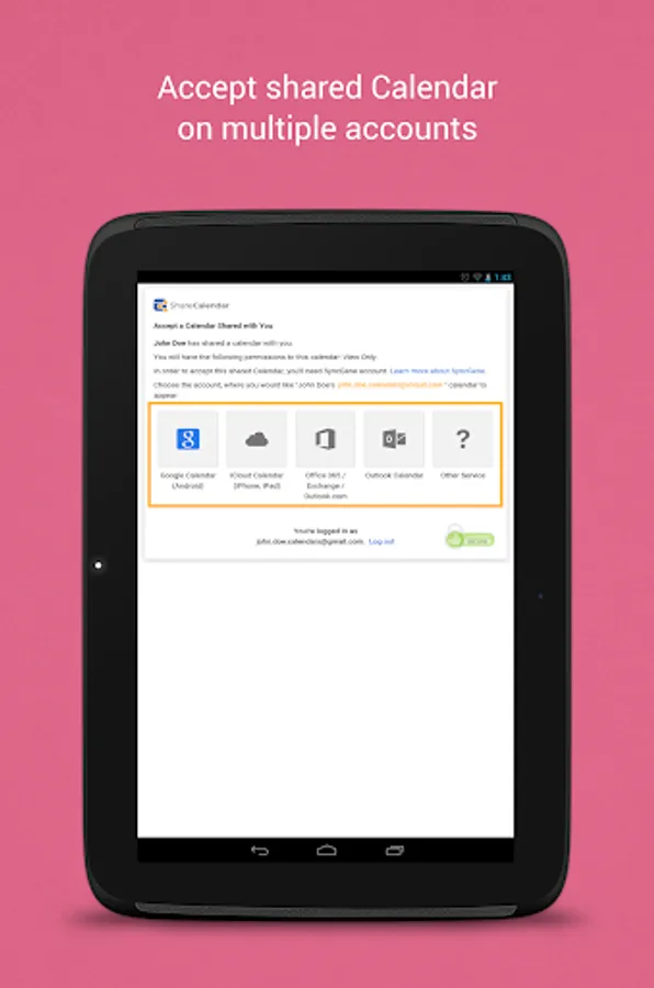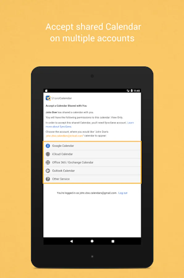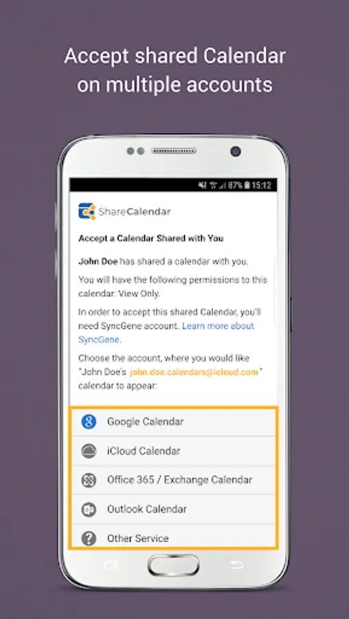 • Accept the shared calendar on your Android device without signing up with another account (e.g. you can accept the shared Calendar in Google calendar if a person shared the Calendar from iCloud or any other account)