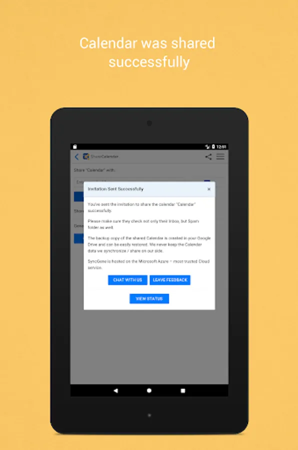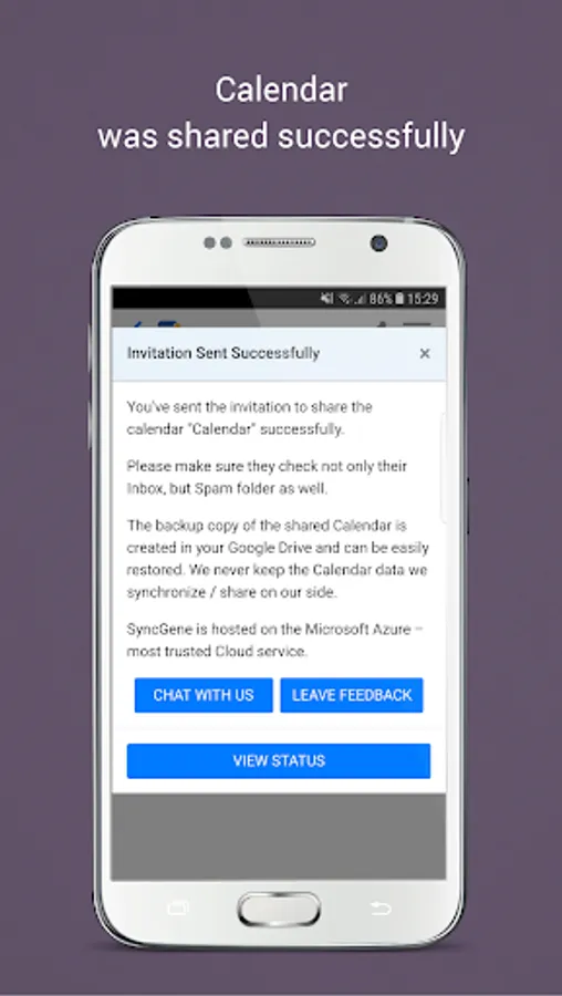 Safe, secure and reliable: all your data is backed up to your service and can be easily restored. We never keep your shared and synchronized information. Our app is hosted on the Microsoft Azure – the most trusted cloud service.