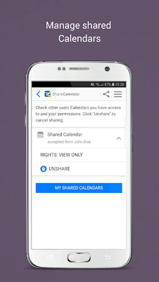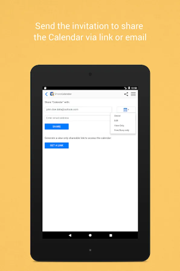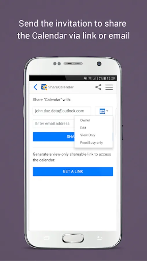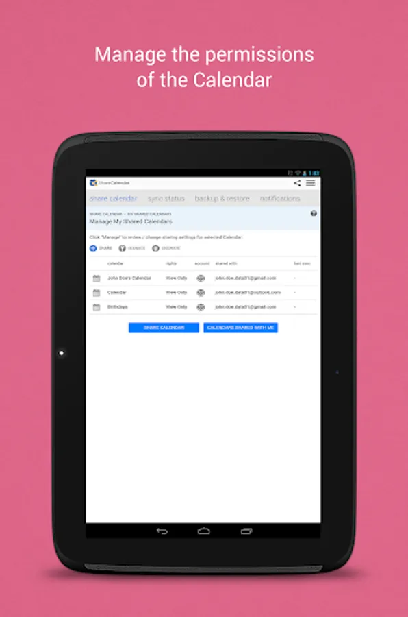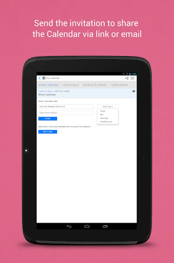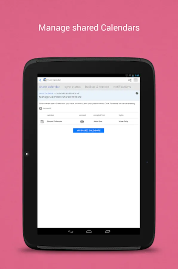 • Share calendar with “View only” and “Free/Busy only” rights using the Free version of app