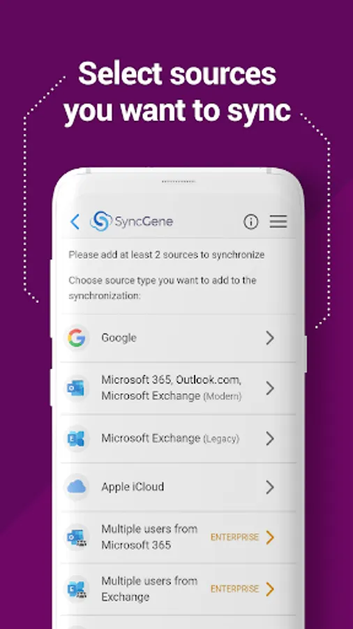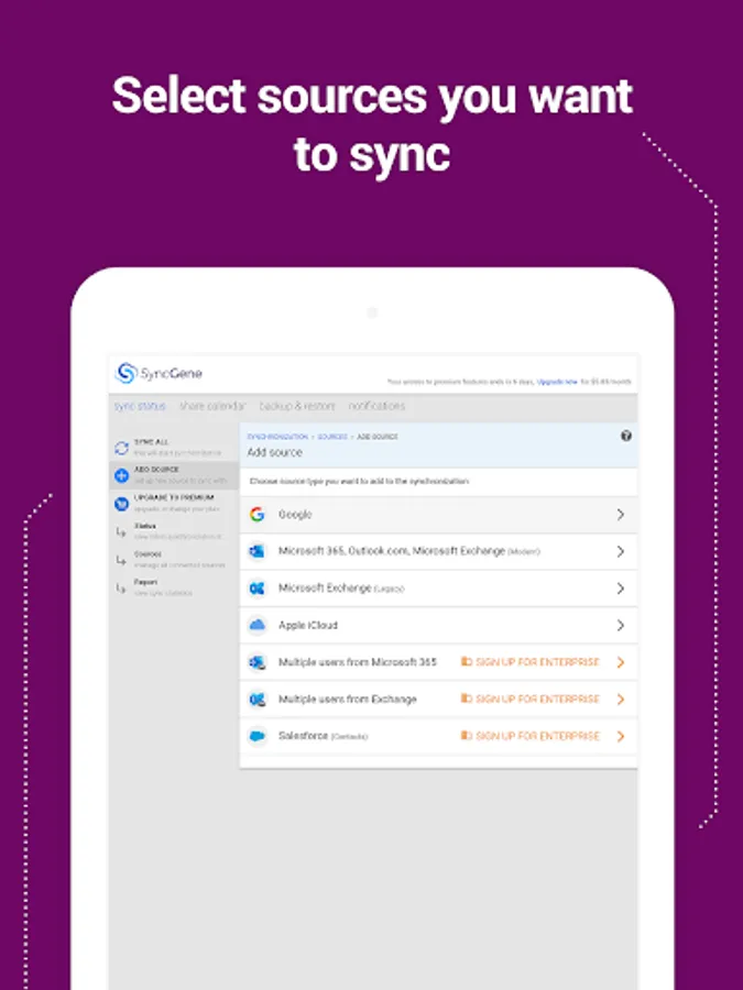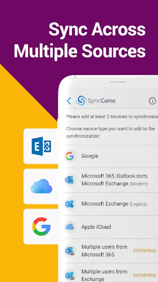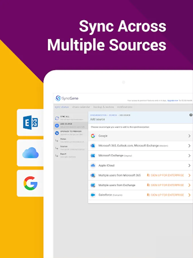 One tool to sync iCloud, Google Calendar, Gmail Contacts and Tasks, Outlook.com/Hotmail, Office 365 and Microsoft Exchange sources, and more coming soon. Any changes you make in your Contacts, Calendars and Tasks will appear on all your connected devices and services used.