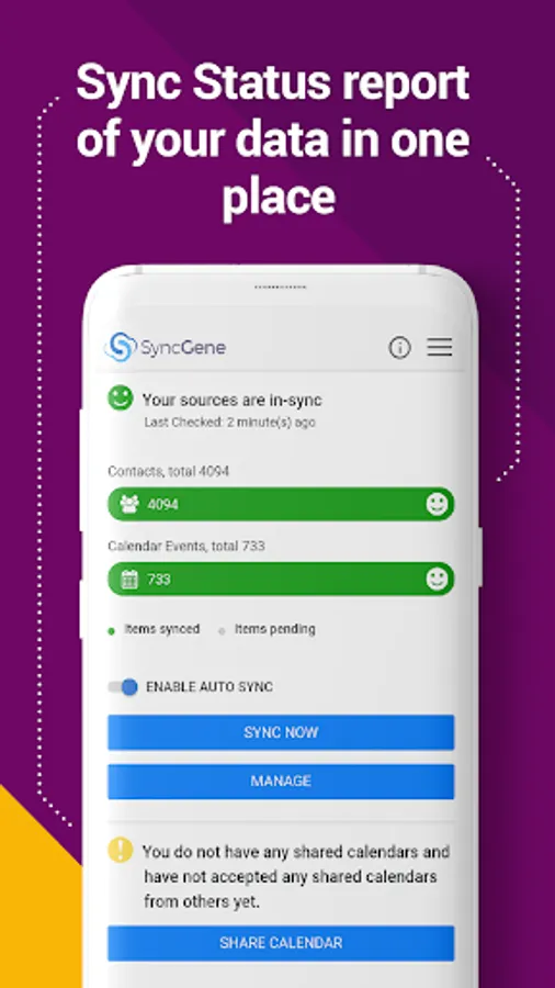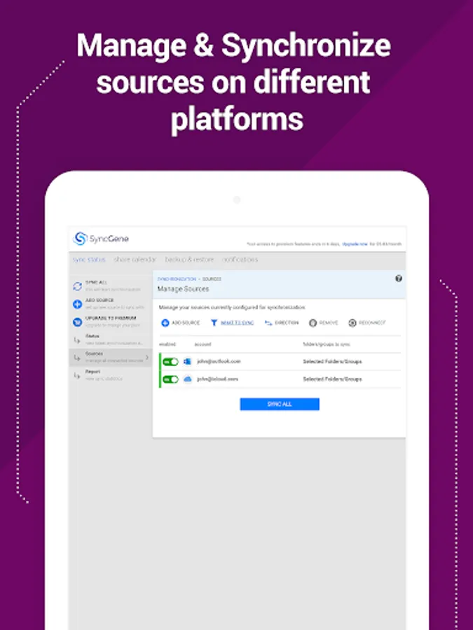 SyncGene stands out for its auto-sync, which is happening in the background. If you change anything in your data, SyncGene will automatically & constantly update all the sources and devices with the latest changes.