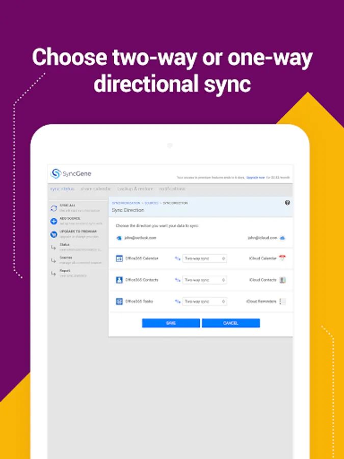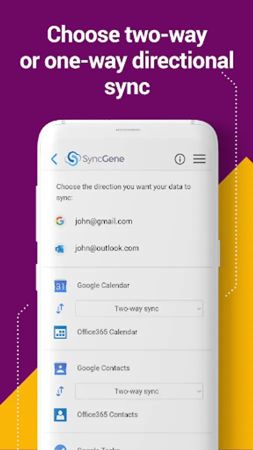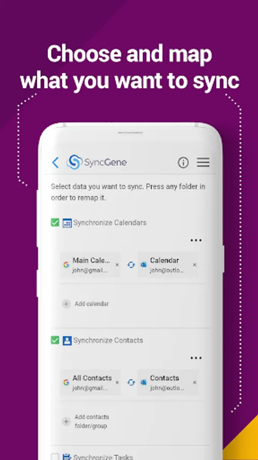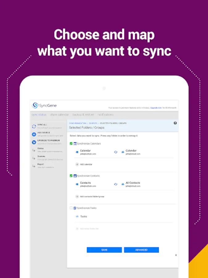 Time saver: easy automation tool for busy people. SyncGene will sync your web apps, email accounts and devices automatically. No need to enter the same information on multiple devices or services. Synchronization is performed without you ever noticing, just set up SyncGene once and you can forget about it.