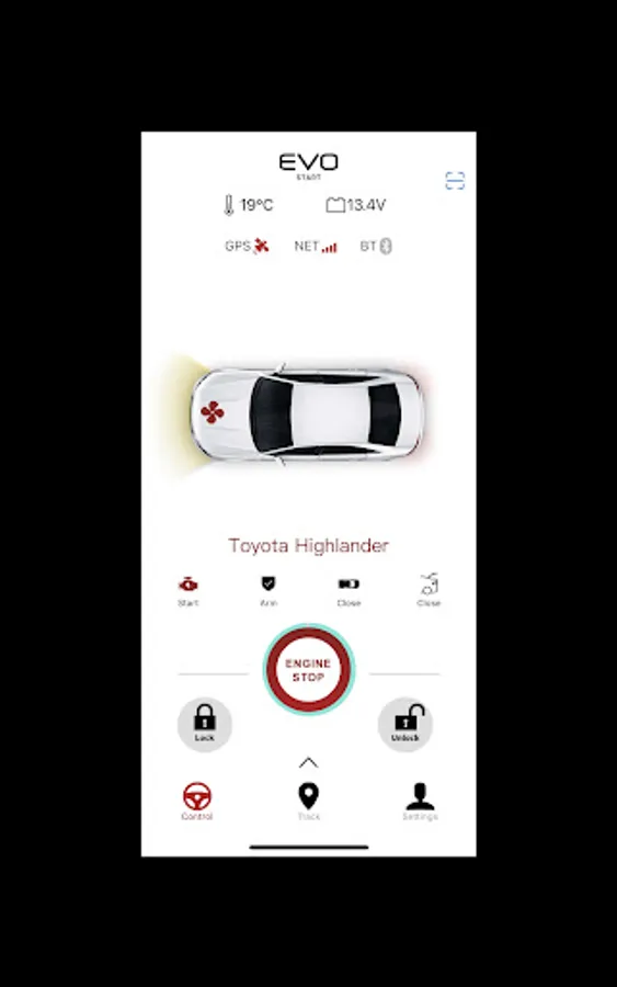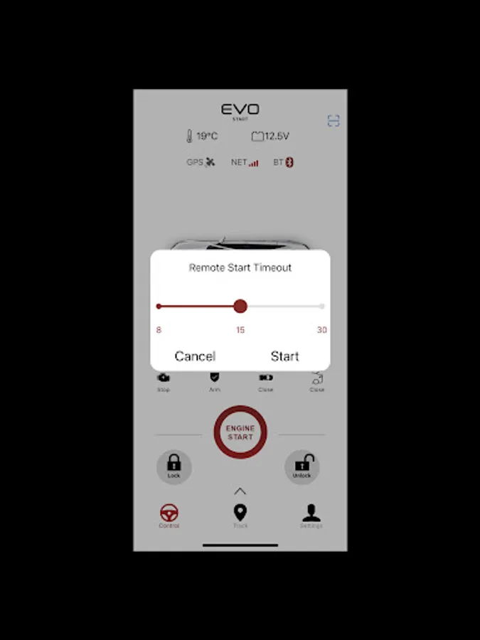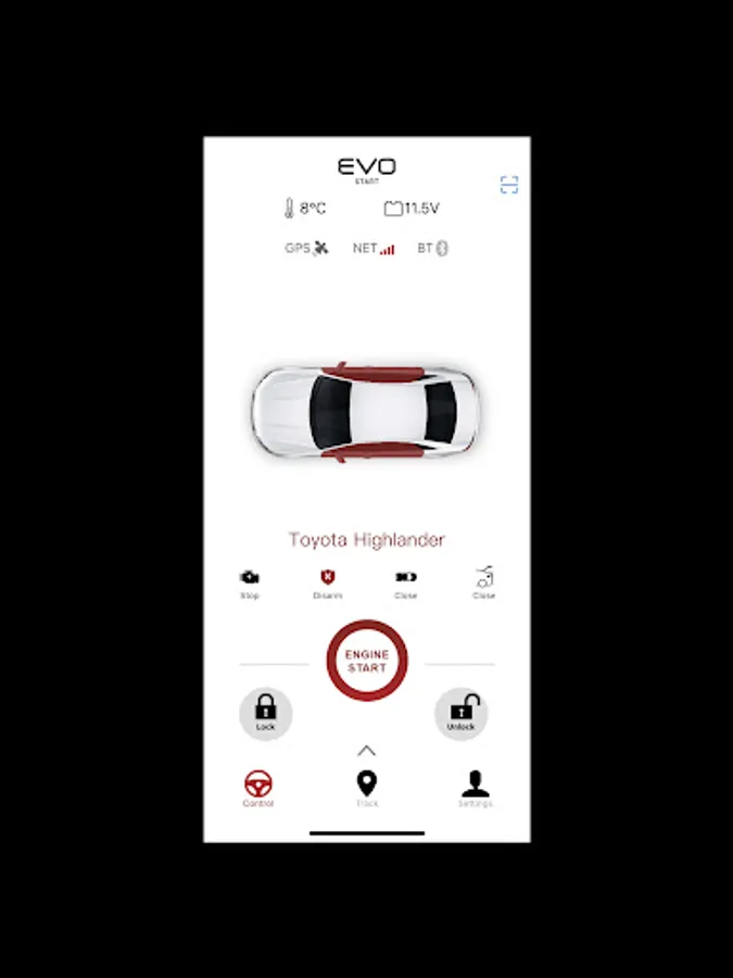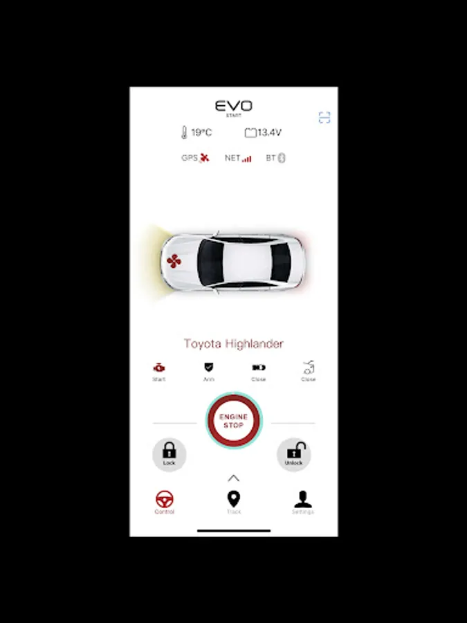 Connect the EVO-START device to a compatible remote control system. Once the EVO-START app is installed on your iOS and/or Android device, you can use it to remote start/stop the engine, control and track your vehicles, as well as receive push notifications regarding your vehicles status.