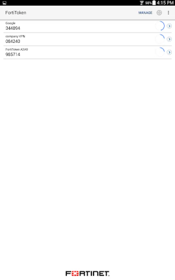 FortiToken Mobile cannot change settings on your phone, take pictures or video, record or transmit audio, nor can it read or send emails. Further, it cannot see your browser history, and it requires your permission to send you notifications or to change any settings. And, FortiToken Mobile cannot remotely wipe your phone. Any visibility FortiToken Mobile requires is to verify your OS version to determine app version compatibility. Sensitive information, such as Email Address or Token seeds may be entered during manual installation of FortiToken tokens, 3rd Party tokens, and Token Transfer.