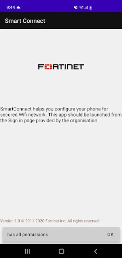 The Fortinet Smart Connect application allows wireless settings to be automatically configured to securely connect to a wireless network.