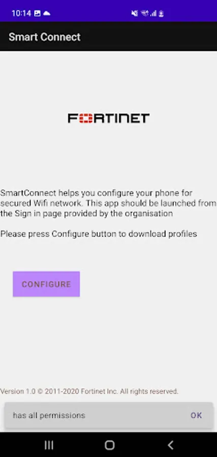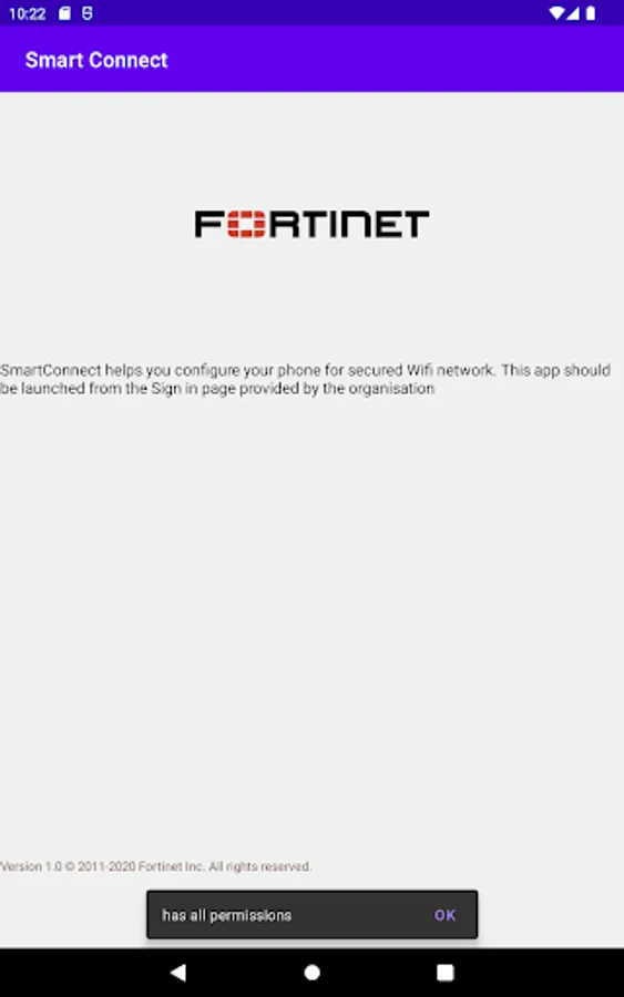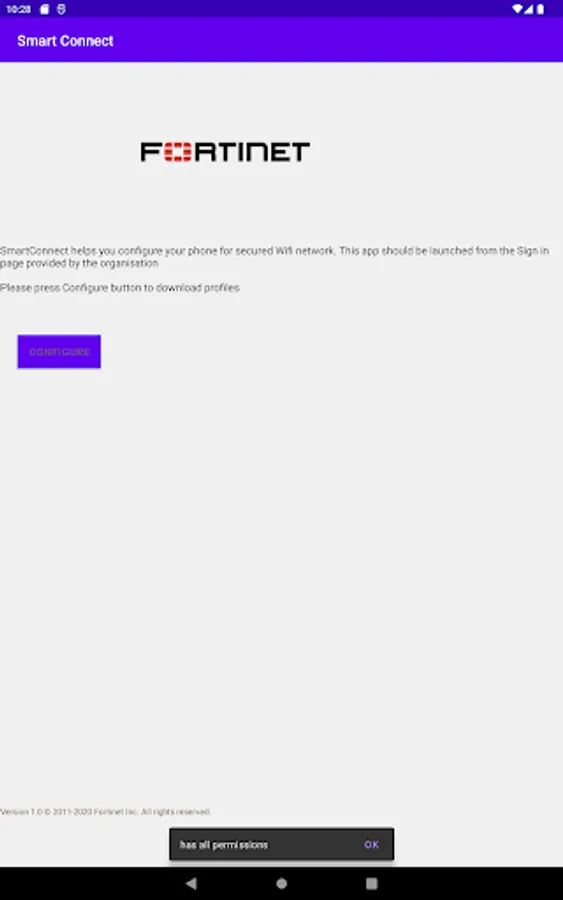 When installed it will allow to download a profile from a network that uses FortiGuest to automatically setup the settings, username, password and any certificates that will be required.