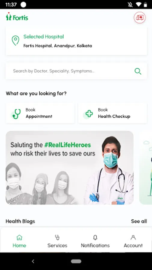 Fortis Healthcare's myFortis application helps its customers connect with Fortis Hospital network digitally to book appointments, receive alerts related to appointments, maintain demographic, lifestyle, clinical profiles, family and friends, view offers, receive health tips, emergency contacts etc.