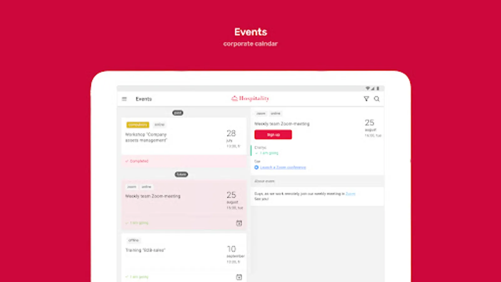⁃ Calendar of corporate events with “sign up to participate” feature