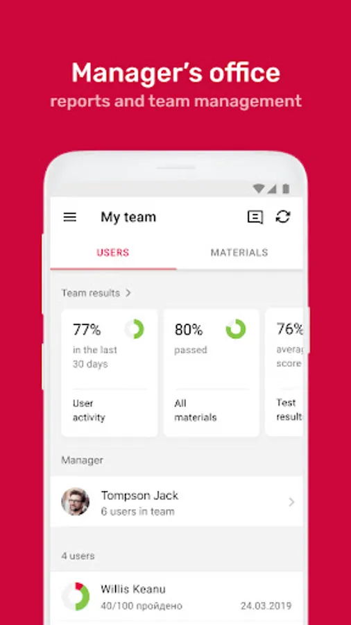 ⁃ Are you a manager? Publish and discuss team news right from the app, give out awards and check training progress of your team