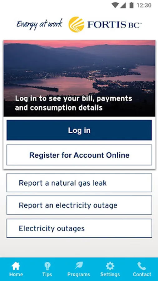 • register your FortisBC natural gas and electricity accounts in the mobile app