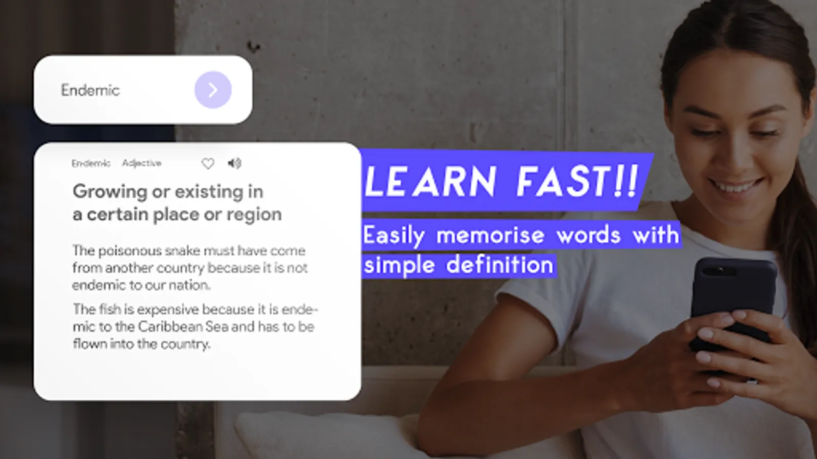 As learning and improving your English vocabulary can bring you so many benefits but it isn’t always easy to learn English vocabulary. While other vocabulary builder apps are providing you with complicated meaning that leaves you confused and bomber you with annoying pop-up ads, we focus on providing the premium quality user experience for free.