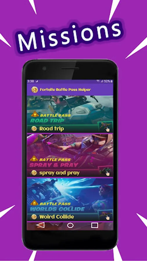 In the app you will find tips to the mission of the battle pass in the popular game mode Battle Royal. By selecting the desired season and challenges in the app, you will see the challenges to it and maps with detailed tips on their implementation.