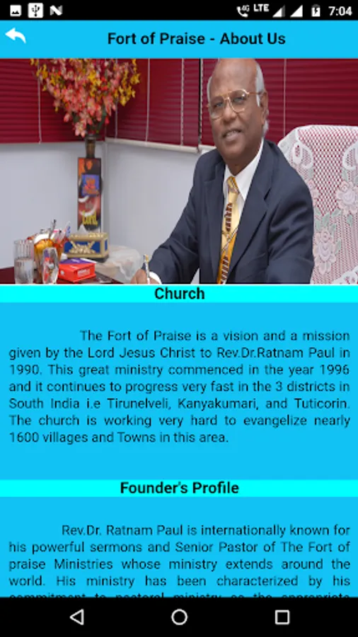The Fort of Praise is a vision and a mission given by the Lord Jesus Christ to Rev.Dr.Ratnam Paul in 1990. FortofPraise ministry commenced in the year 1996 and it continues to progress very fast in the 3 districts in South India i.e Tirunelveli, Kanyakumari, and Tuticorin. The church is working very hard to evangelize nearly 1600 villages and Towns in this area.