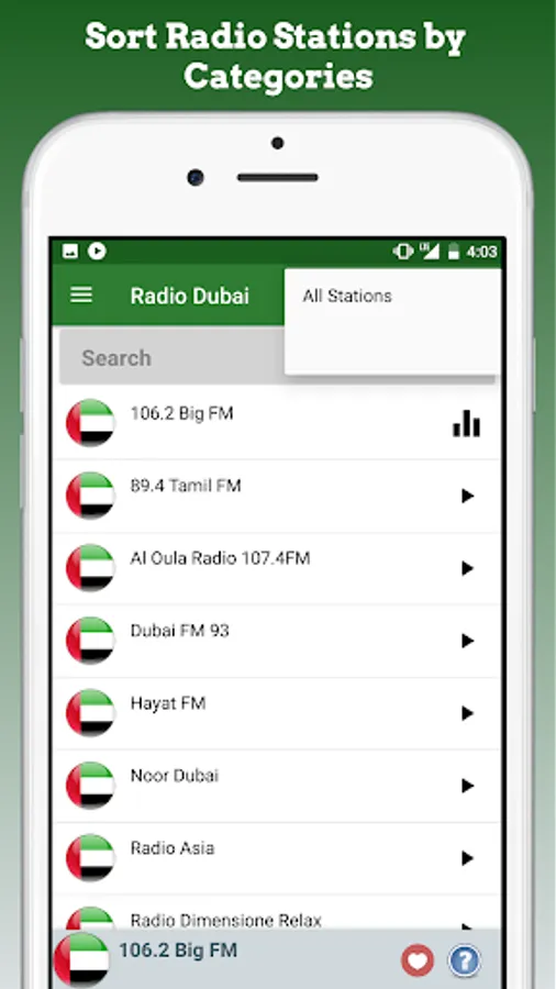 Dubai Radio includes the most popular Dubai radio stations all together for faster, easier listening and for free. You can quickly enjoy your favourite Dubai radios by various categories in one click, instant playback and premium quality.