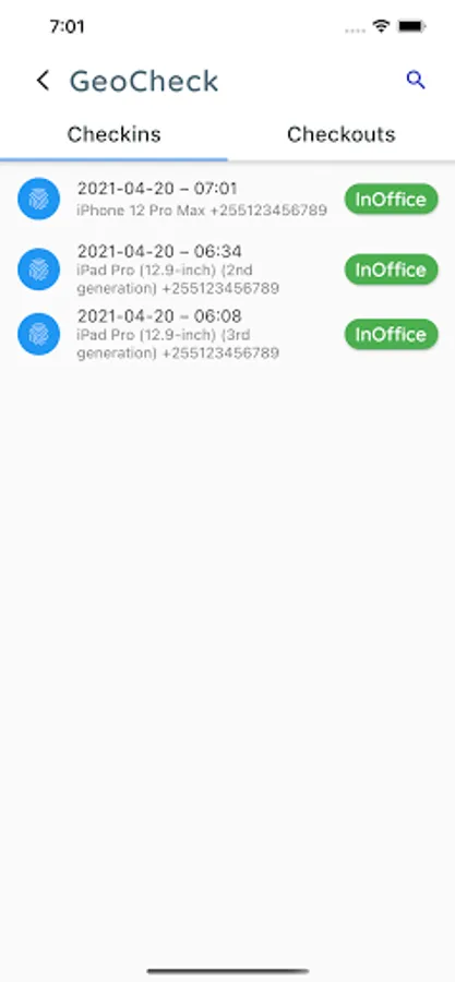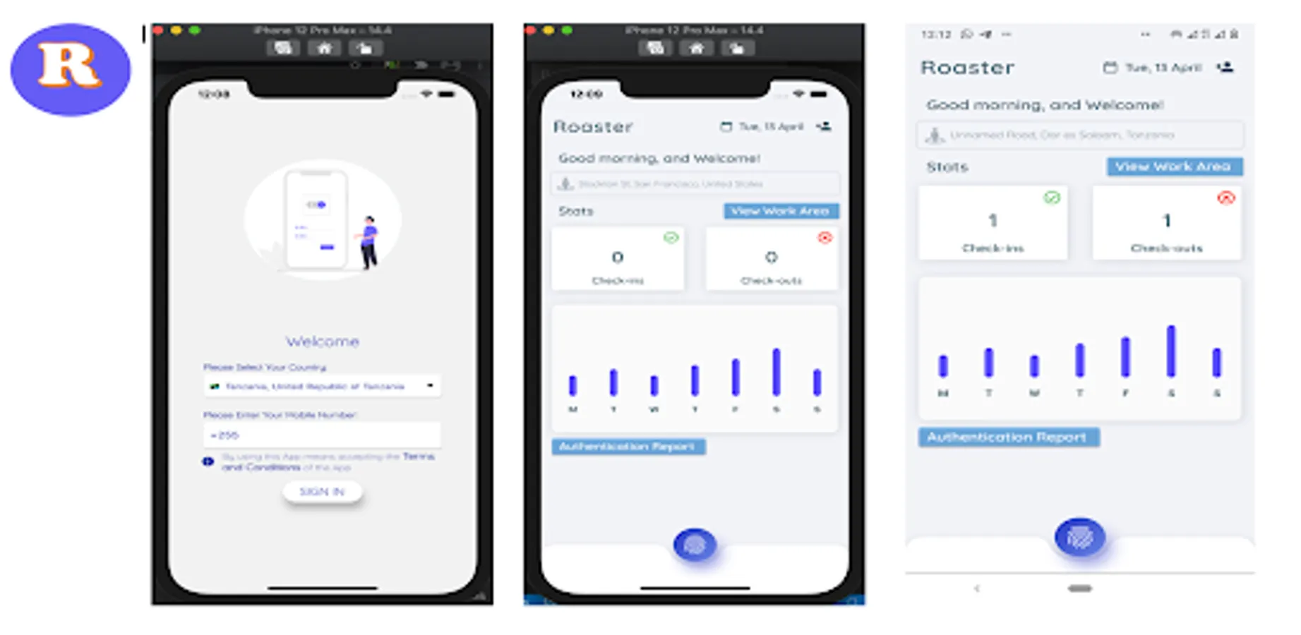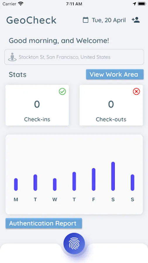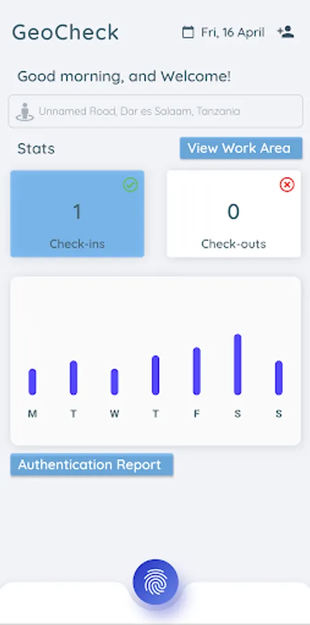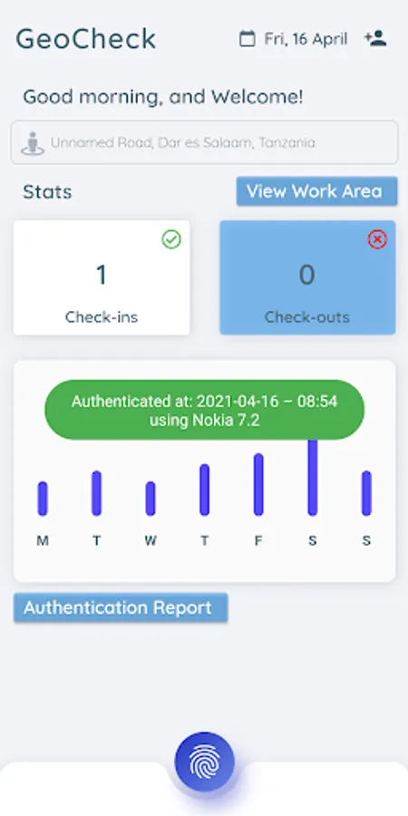 This app allows users to checkin or/and checkout in their places of work using either fingerprint or faceID, then keeps track of whether you've checked-in inside or outside your work area!