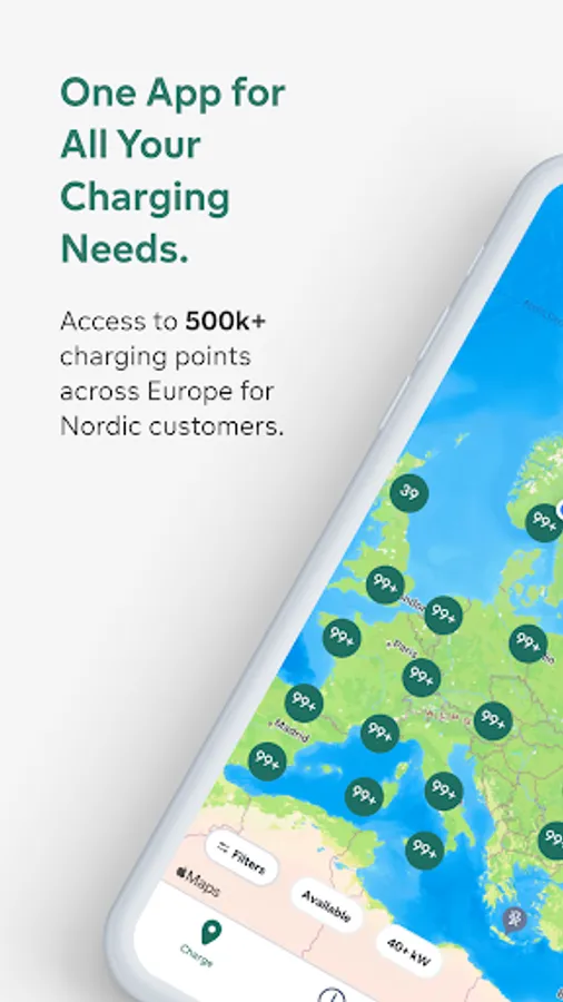 Charging Everywhere You Go – Gain access to thousands of charging stations in Norway, Sweden and Finland, and when travelling across Europe. Find available charging points near you or along your planned route. Use filters to display only high-speed charging stations with a minimum of 50 kW capacity.
