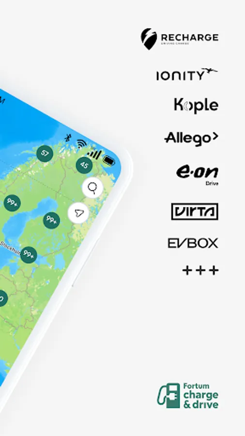 Join the Fortum Charge & Drive network and experience stress-free EV charging at major operators, including Recharge infra, Kople, IONITY, Mer Sweden, E.On., Fastned, Ewe Go, Allego, EnBW, Greenflux, Aral Pulse, Monta, Enel X, Shell Recharge, Virta and nearly 1,000 others.