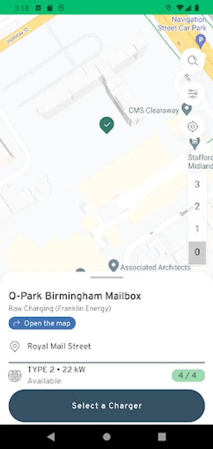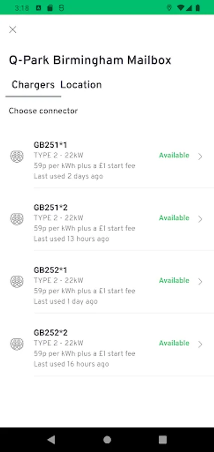 - Charge point information on all points such as: location, connector type, pricing and status.