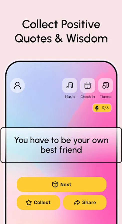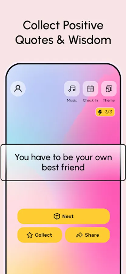 - Your Quote Collection: Swipe and save the quotes that resonate with you. With 3 FREE energies every day, you can build a collection of wisdom that speaks to you.