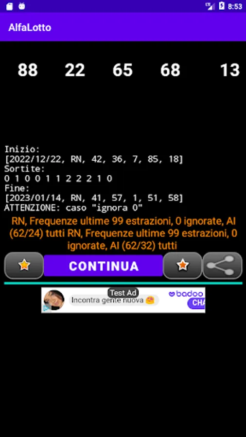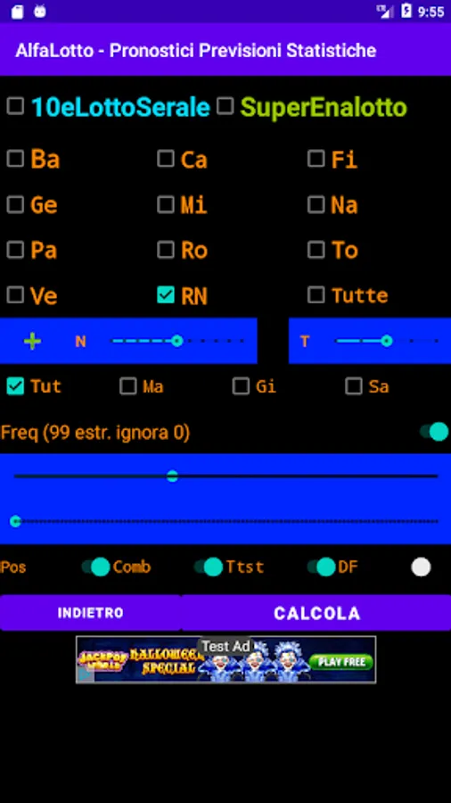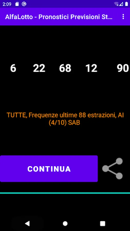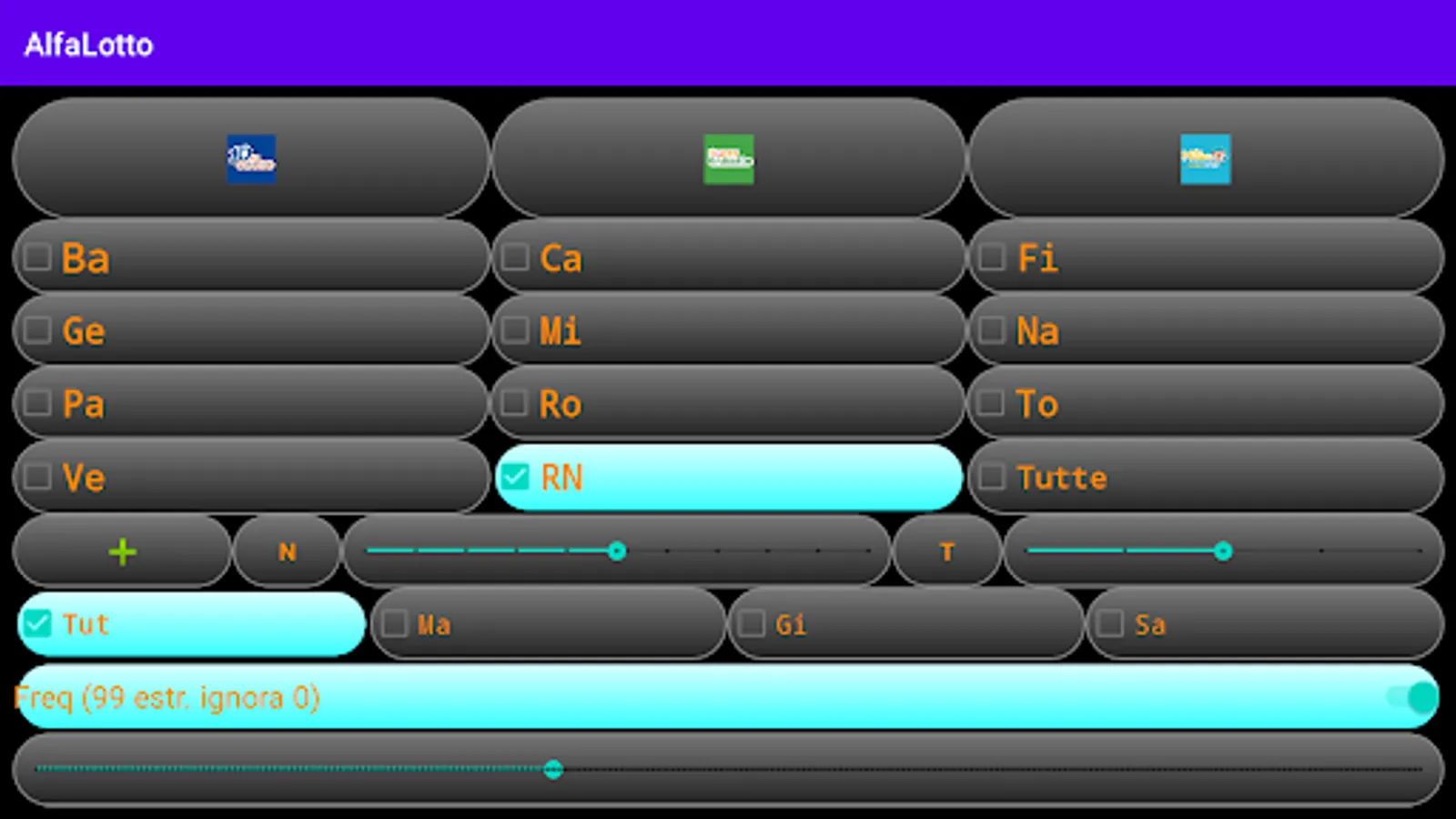 - Statistical analysis: the App will provide a prediction based on the delays or frequencies related to the wheels and the last selected draws also based on statistical inference;