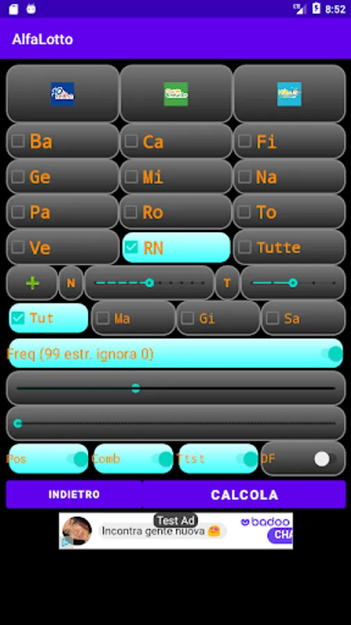 - Artificial Intelligence: the App will try to detect repeating draw patterns based on the number of draws and the reels selected for calculation. If "Frequencies" is selected, the most frequent patterns will be provided, otherwise the less frequent ones;